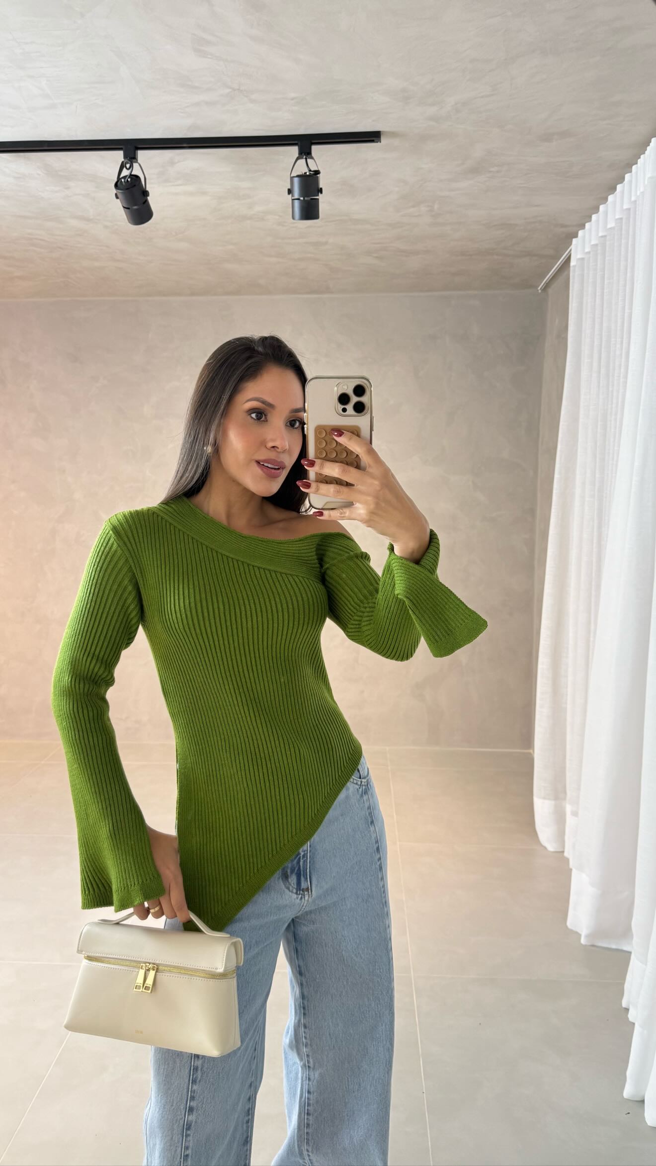 Blusa na cor verde confeccionada em tricot canelado