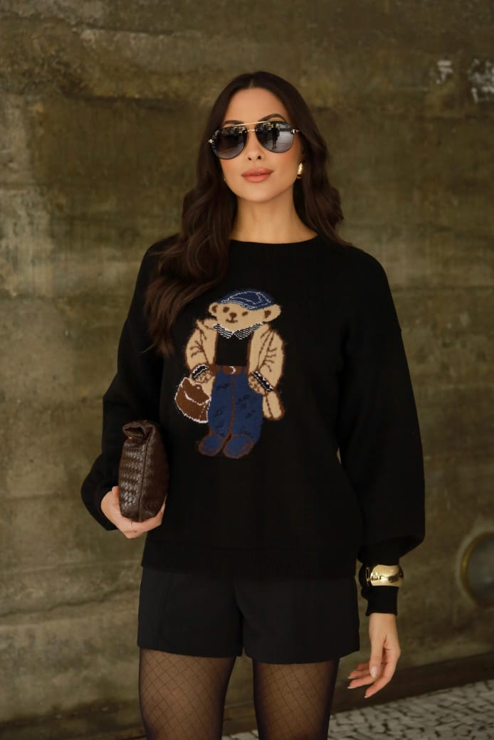 Delicada e cheia de personalidade, a Blusa de Tricot Bear é aquela peça que transforma o look.