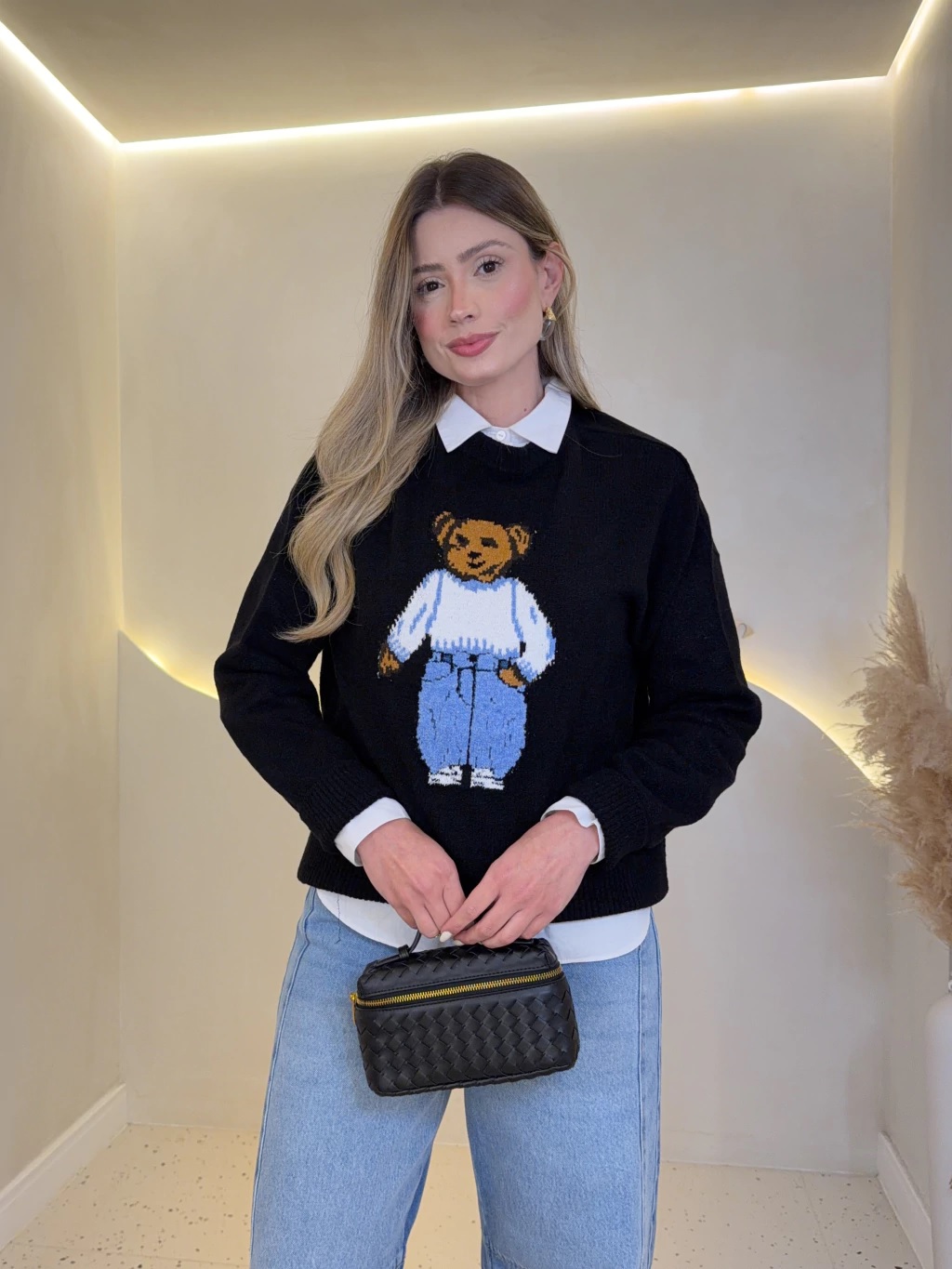 O destaque fica por conta do ursinho que traz um charme moderno e fashionista à produção