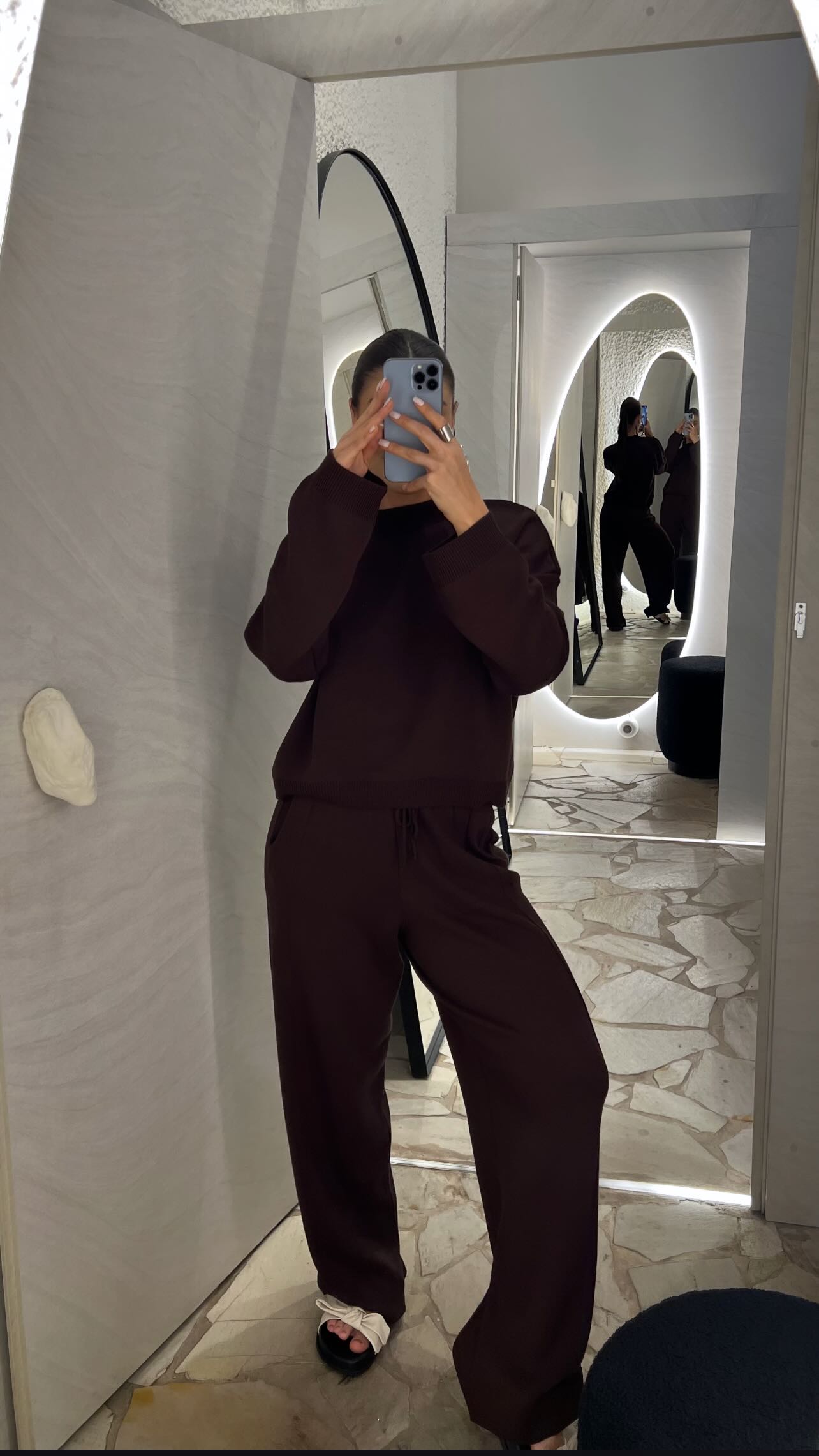 O Conjunto de Tricot Jade Marrom é a definição perfeita de elegância