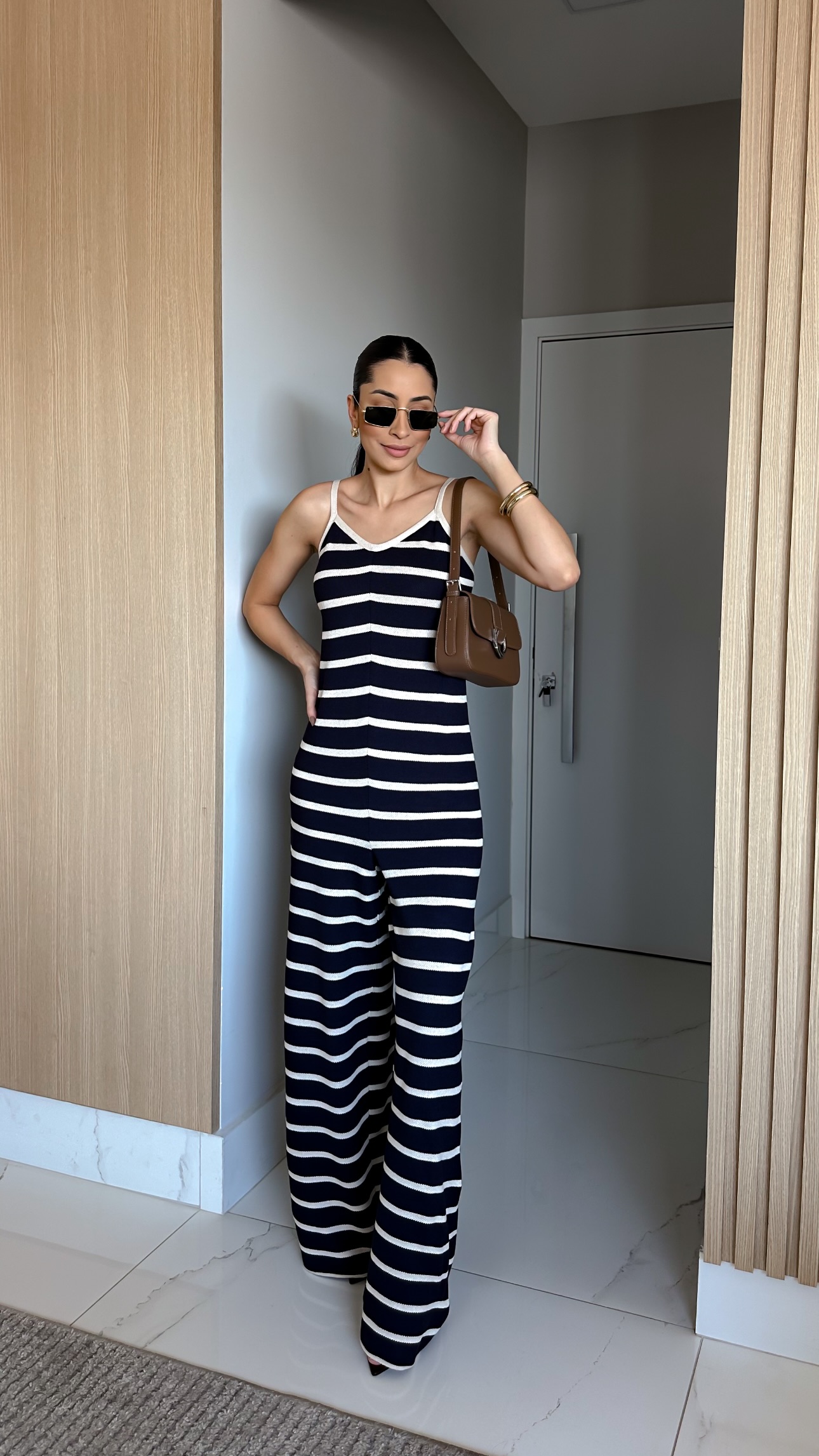 Macacão na cor preta confeccionado em tecido modal de toque macio