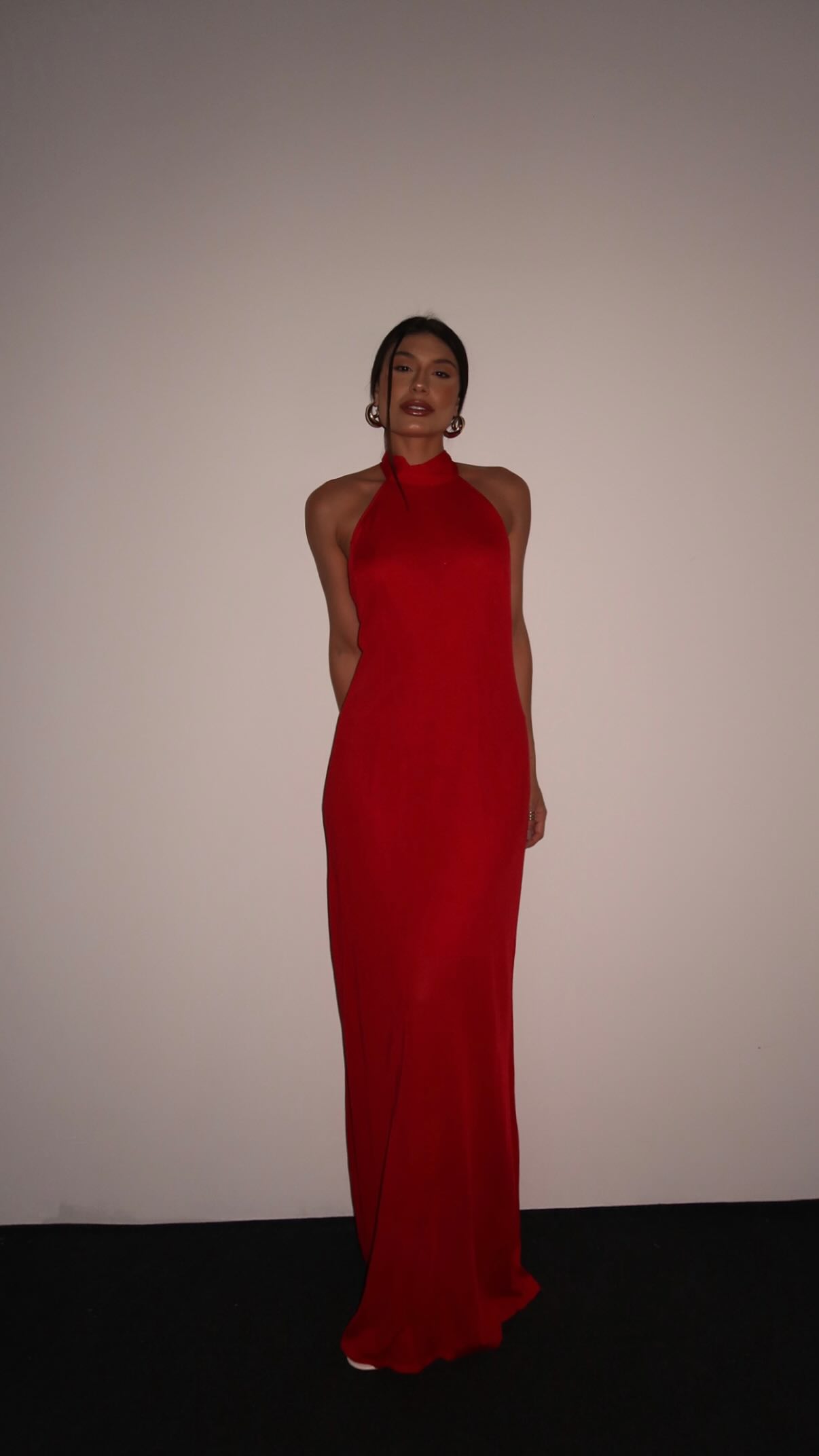 Vestido na cor vermelha de comprimento longo
