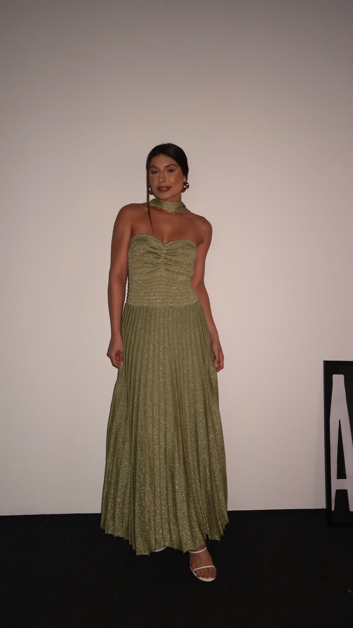 A peça é confeccionada em tricot plissado que adiciona movimento e sofisticação ao visual